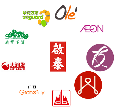 進駐國內商超渠道強勢進駐華潤萬家、樂購、百佳、卜蜂蓮花、永旺、歲寶、天虹、人人樂、 友誼、廣百、王府井、東山、益華、環盛等全國大商超系統。