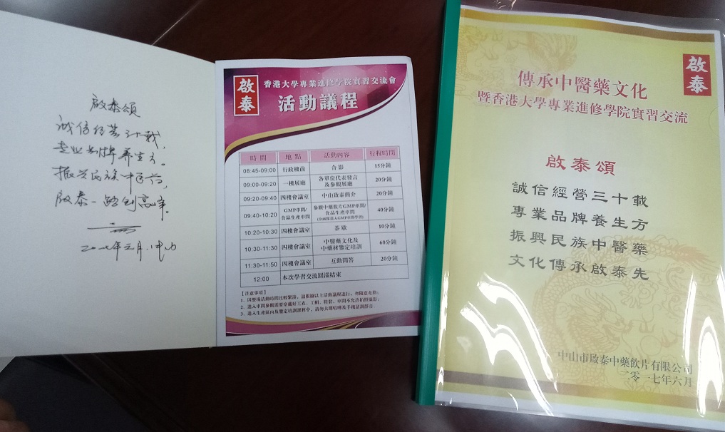 2017年6月21日,香港大學專業進修學院暨中山火炬職業技術學院的老師和學生們蒞臨中山啟泰進行學習交流,探討中醫藥專業知識、共同促進中醫藥文化傳承。